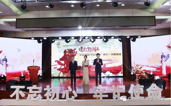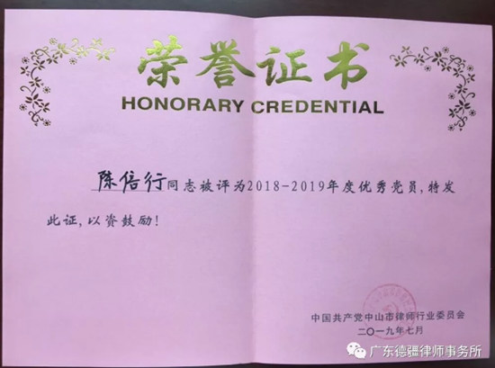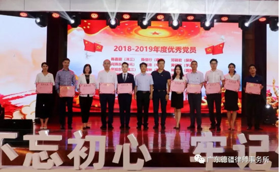 7月2日,为庆祝中国共产党成立98周年,充分展示中山市律师行业昂扬向上的精神风貌,大力传播正能量,中山市律师行业党委和中山市律师协会联合举办了“不忘初心 牢记使命”庆七一文艺汇演暨表彰大会。市司法局局长林少棠,市司法局党组书记赵小冰,市司法局党组成员、副局长、市律师行业党委书记邓春林,市律师行业党委副书记兼纪委书记张爱文,市律协会长卢宏盛、吴让炜,市律协监事长、市律知联会长程禹斌,以及市律师行业党委成员、纪委委员,市律协理事、监事会成员、委员会主任、市律知联理事、全市党员律师等近300人参加了活动。大会举行了颁奖仪式,向5家先进党组织、20名优秀党员律师、5名优秀党务工作者进行了表彰。我所党支部书记、律所主任陈信行律师荣获“2018-2019年度优秀党员”称号。