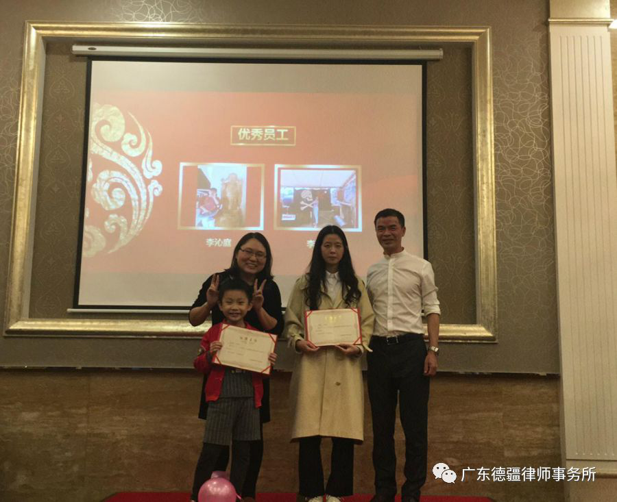 最后本次晚会分别为德疆所优秀律师、优秀员工与优秀律师助理进行了颁奖。德疆所得力于全体员工的努力才能取得如今的佳绩,在新的一年里,德疆人将在陈信行主任的带领下,不断奋进、携手并肩、顽强拼搏,为2020年更远大的目标而不断努力!