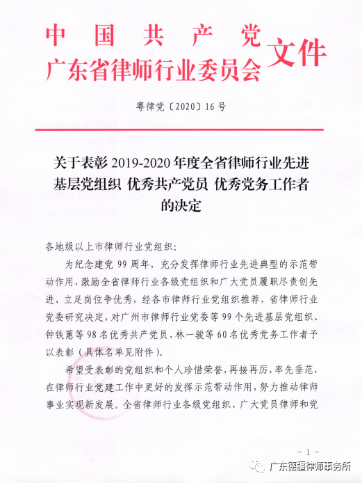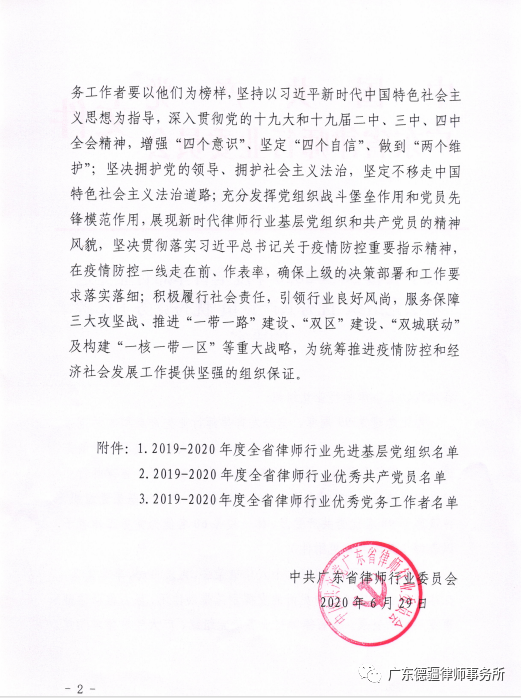 2019-2020年全省律师行业优秀表彰