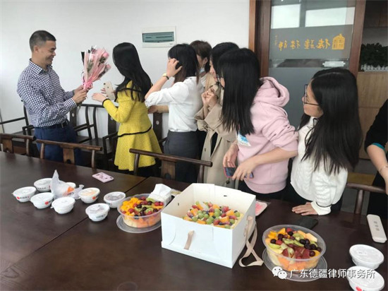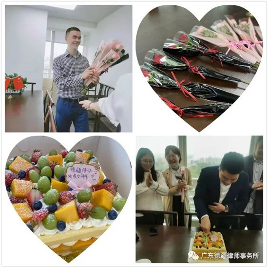 迟日江山丽,春风花草香。在“三八”国际劳动妇女节来临之际,广东德疆律师事务所于3月8日上午开展欢庆三八节活动,为事务所全体女同胞致以节日的问候和美好的祝福,并为2021年第一季度过生日的同仁庆贺。