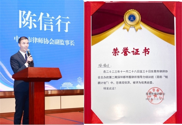 就本次培训,陈信行律师表示:非常感谢深莞惠中四地律协倾心打造的培训班,通过此次培训获益匪浅、感触良多,为律师的业务能力和综合素质的提升提供了良好契机,拉近了律师之间交流的距离。因此,我将学以致用,把学到的先进管理理念和方法与律所管理实践相结合,增强工作能力、提升管理效能,关注行业的发展趋势和需求,为行业、为社会的法治建设贡献自己的力量。