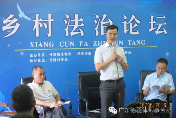 2016年6月15日,神湾第四期“乡村法制论坛”在神湾竹排村委会如期举行,神湾法制办主任周海明、中山市第一人民法院坦洲法庭庭长匡勇、广东德疆律师事务所主任陈信行、各村民小组组长、村民参与了本次论坛,本次论坛主要涉及的内容是农村土地租赁合同纠纷的法律问题。