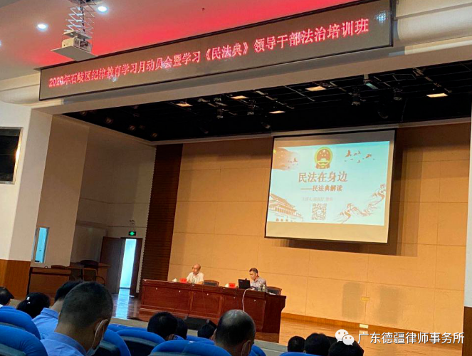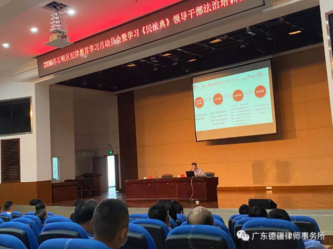 9月1日上午,石岐区举办石岐区纪律教育学习月动员会暨学习《民法典》领导干部法治培训班,广东德疆律师事务所陈信行律师作为中山市人民政府石岐区办事处的常年法律顾问,受邀为区主要领导、公安领导干部、社区工作人员、司法所人员等共201人授课。为持续推动《民法典》的学习宣传,陈信行律师从编纂民法典的背景和重要意义入手,提高了参会人员对于《民法典》颁布实施重要意义的认识。