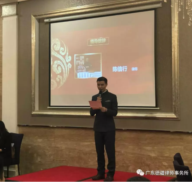 晚会开始,我所陈信行主任进行了发言。陈信行主任总结了2019年的工作,对2019年德疆所取得的成绩予以肯定,并展望未来的一年里,德疆所能在保持传承的基础,迈向新途,开启新章。
