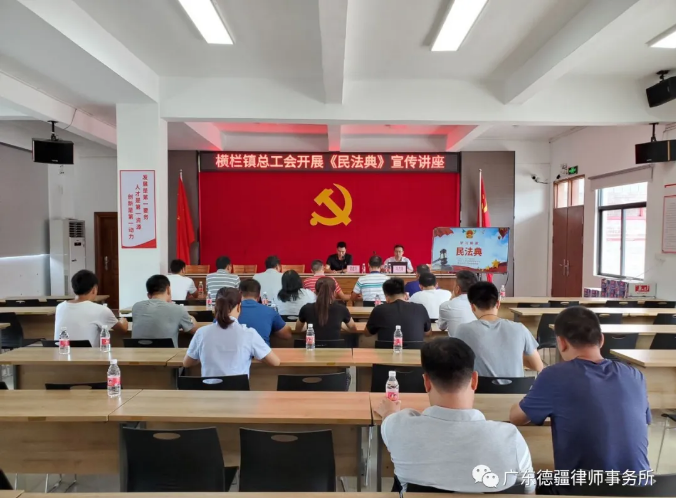 2020年8月7日下午,德疆冯杰锋律师应横栏镇总工会邀请,在横西村党群服务中心举办《民法典》宣传讲座。参与讲座人员有工联会主席、专干等。横栏镇总工会专职副主席梁建华出席了讲座。