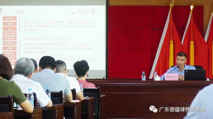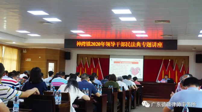 为深入学习贯彻习近平总书记在中央政治局第二十次集体学习会上重要讲话精神,充分认识颁布实施民法典的重大意义,更好地推动民法典实施。2020年8月25日,中山市神湾镇举办了2020年领导干部《民法典》专题学习讲座。我所陈信行律师受邀担任本次讲座主讲人。