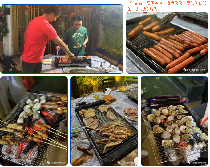 我们到达别墅后稍事休息便进行了拓展游戏。傍晚,我们的BBQ烧烤轰趴开始了。从洗菜串串到围炉造火,大家分工合作,工作之余,依然这么有默契,打闹说笑,好不热闹,享受一起劳动的快乐。大家纷纷举起酒杯,感谢相遇,感谢德疆这个大家庭。