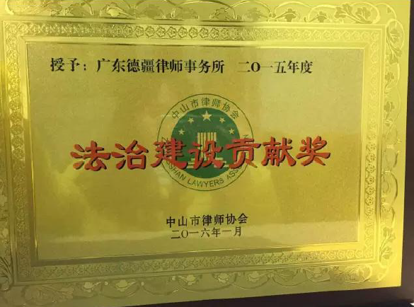 1月22日,中山市律师协会2015年度奖励评选活动结果最终公示,广东德疆律师事务所获“法治建设贡献奖”“理论成果奖”团体奖项。广东德疆律师事务所是一家综合性的律师事务所,业务范围涵盖多个领域,包括政府(公共)事务、公司(内部)事务、家庭事务、商业事务等非诉讼综合法律业务,以及传统的民商事争议处理(仲裁、诉讼)、刑事争议处理(辩护、和解)、行政争议处理(复议、诉讼)等业务。