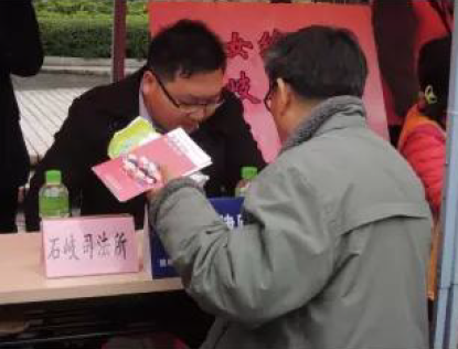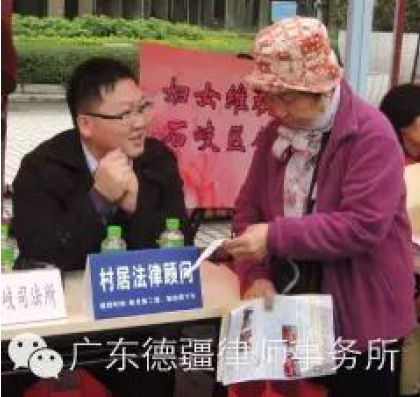 图为李罡律师助理热情为居民提供法律服务